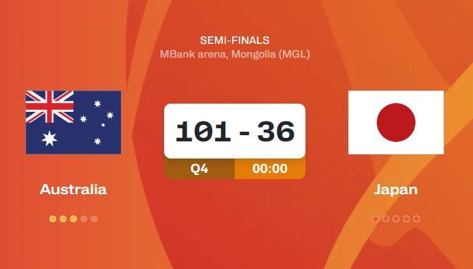 直播吧9月6日讯 男篮U16亚洲杯半决赛,澳大利亚101比36大胜日本。